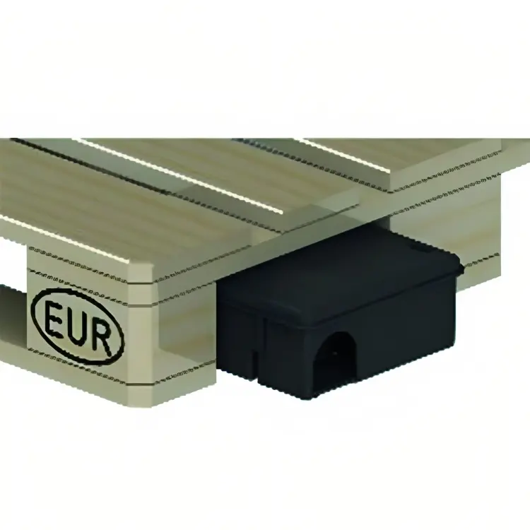 El PORTACEBO PALLET 701N está fabricado con polipropileno, sus dimensiones son las adecuadas para que puedan colocarse debajo de los pallets EUR. Simula una guarida ingeniosamente diseñada, brindando la confianza a los roedores para que puedan permanecer el tiempo necesario y consuman el cebo rodenticida.